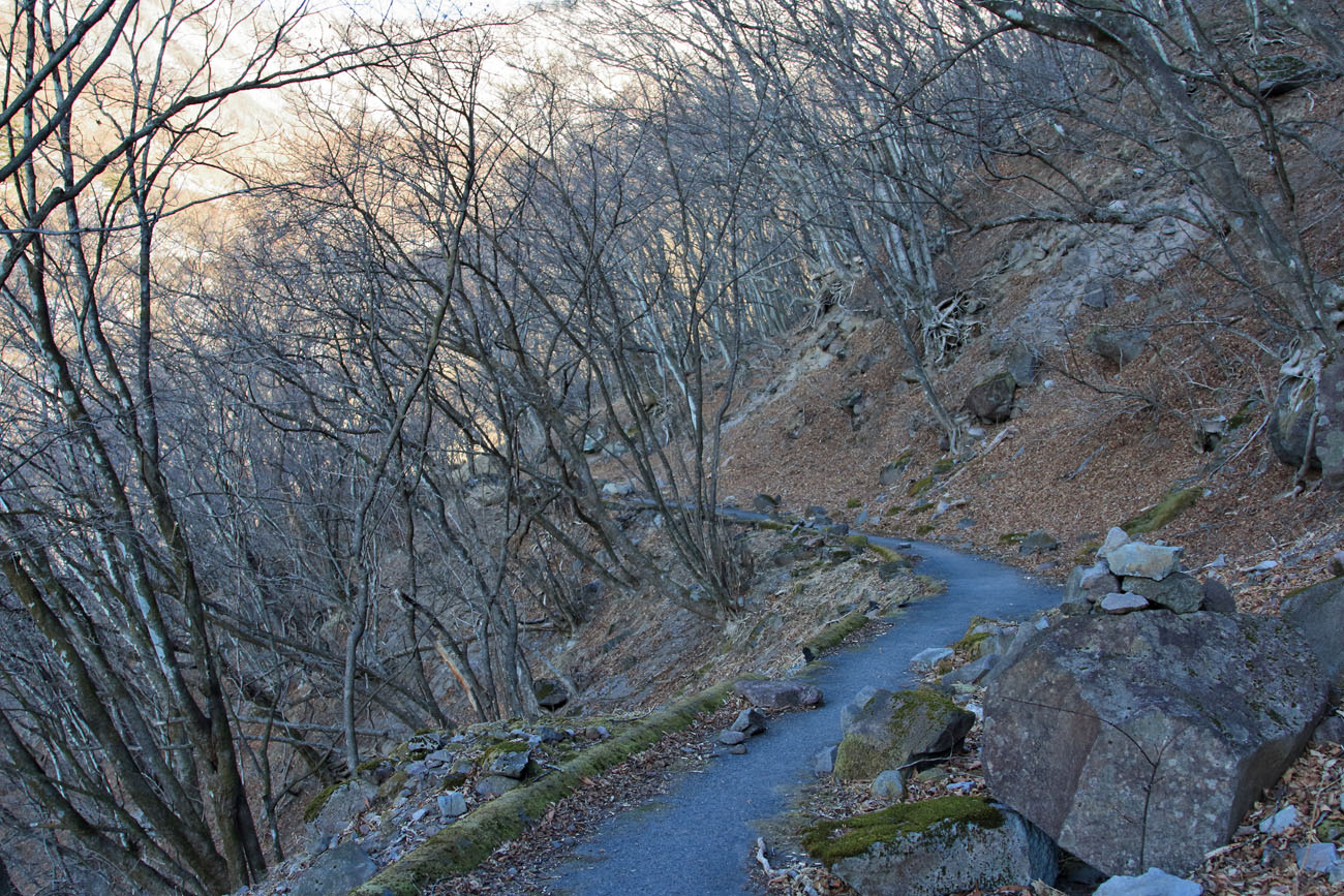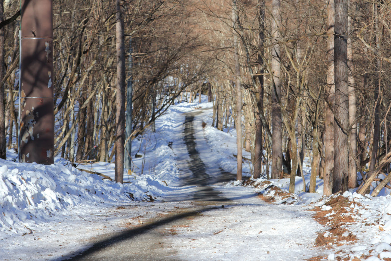 いつもなら滝尾神社(たきのお-じんじゃ)辺りから道路や林などに残雪が見られるが、ほとんどなし。