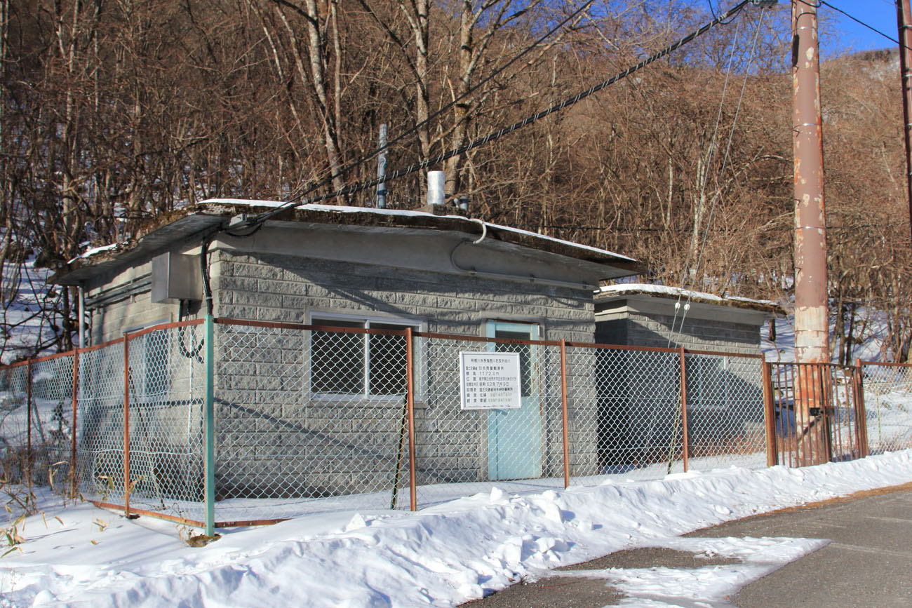 日向砂防堰堤から登りつめると林道に出合う。すぐ近くの道路沿いに日向雨量観測所がある。