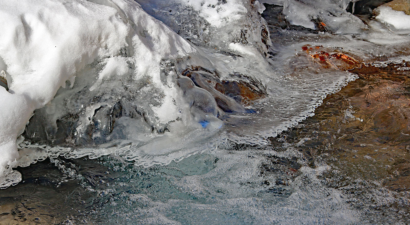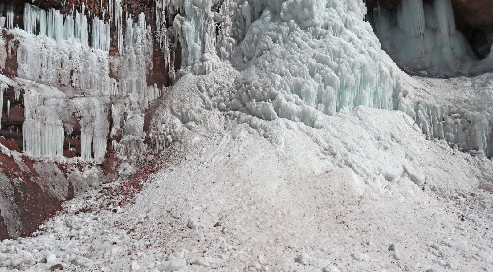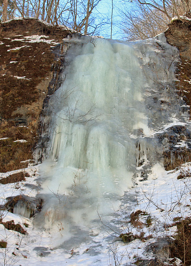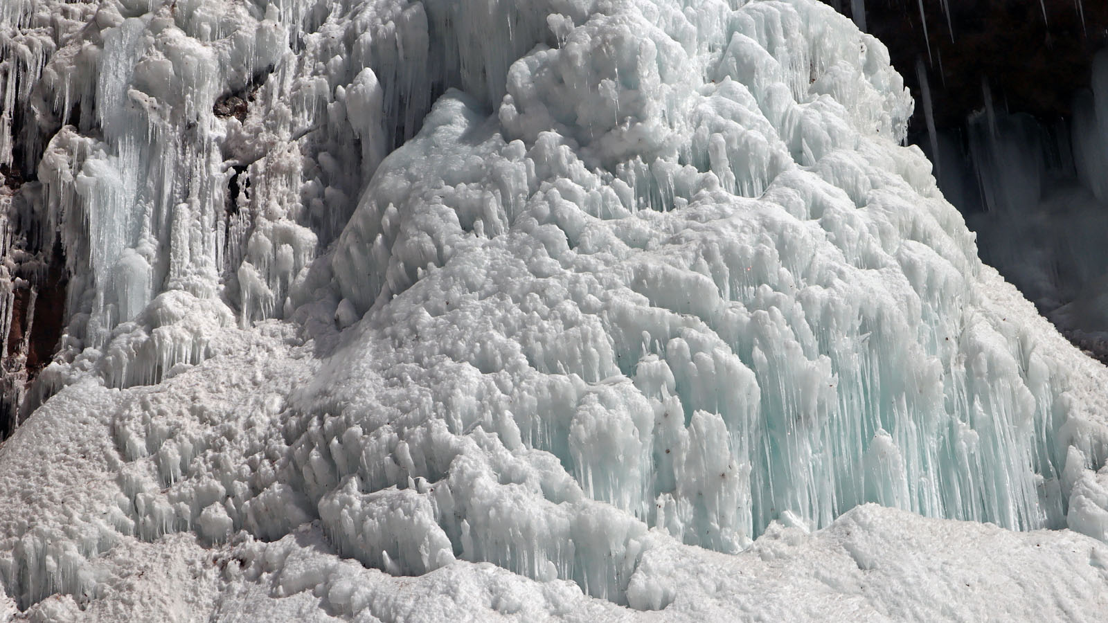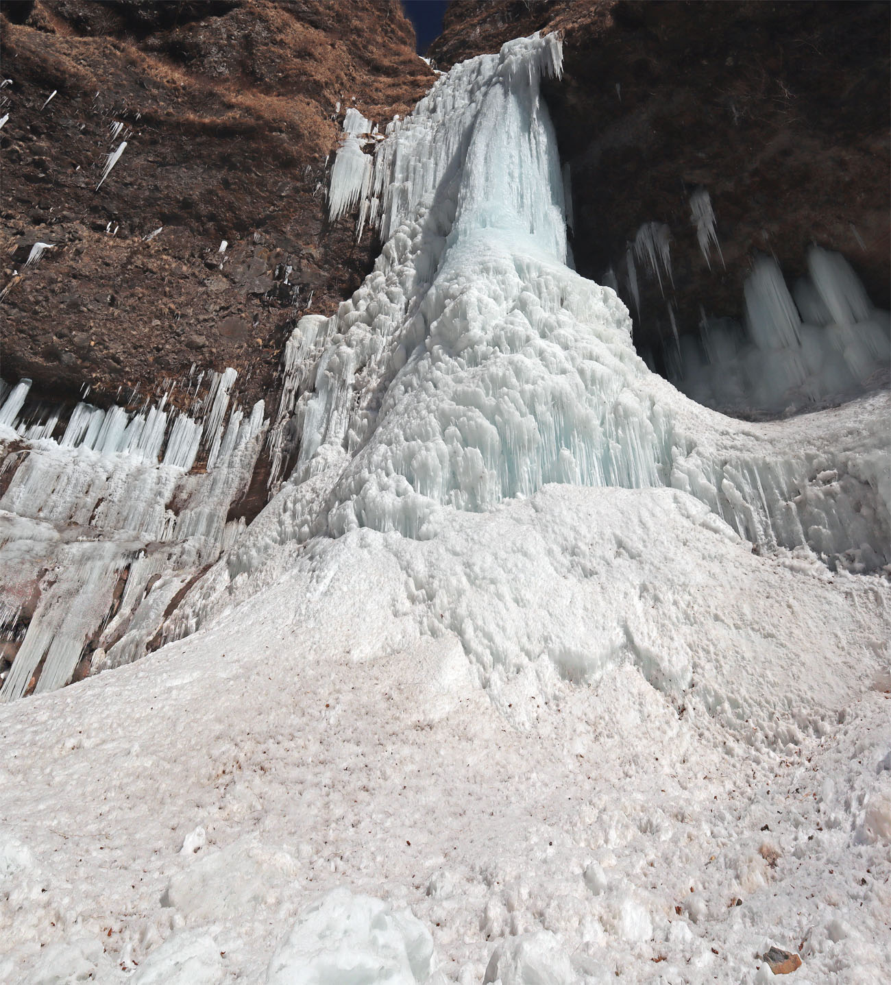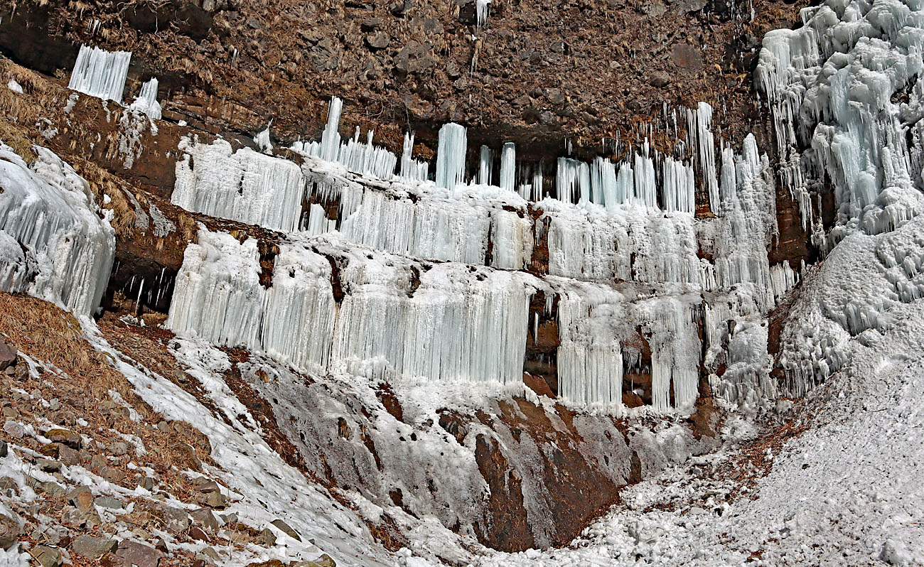 ここは岩が棚状になっており、ステージを感じさせる。上から落ちる水が凍り付いて、鋭い氷柱を何本も連続して作られる。