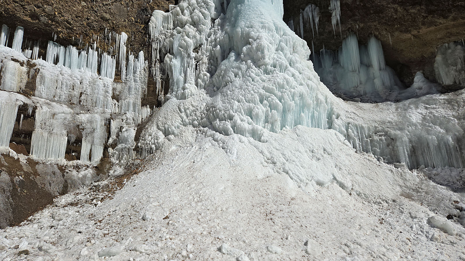 しかし、以前は両脇に広がる3段の氷柱のステージになっていたが、3段目は一部に氷柱が見られるものの、2.5段ほどになっている。